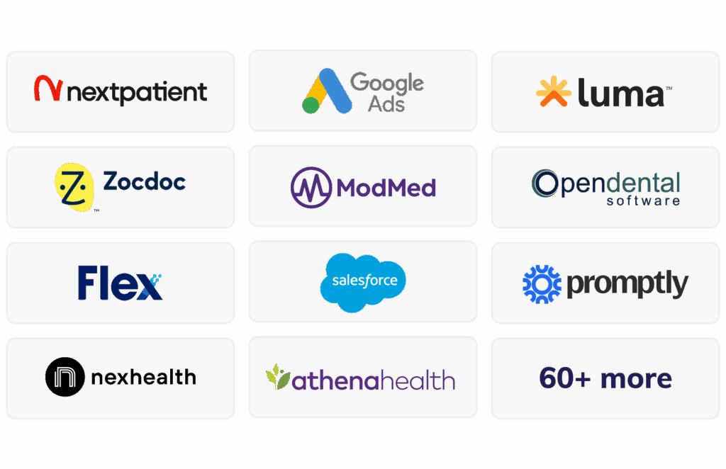 Integrate with your existing tech stack for full-funnel coverage. Capture online bookings, optimize ad campaigns and measure ROI with our HIPAA-compliant integrations.